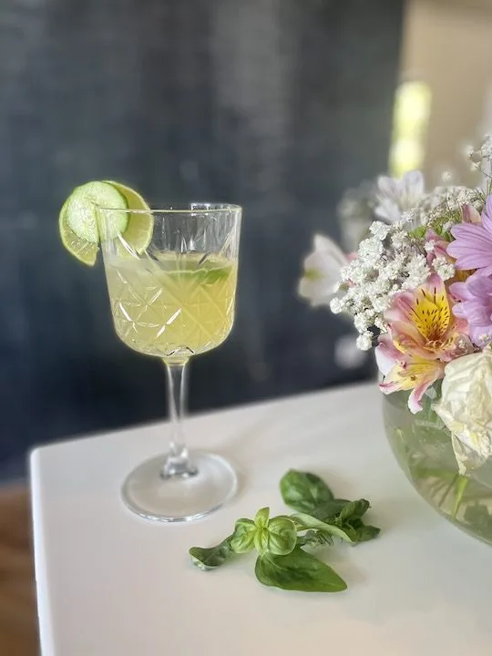 For serving, put ice in the glass, pour the liquid from the bottle,, if it is strong, add sparkling water (or kombucha). You can add basil leaves and thin slices of cucumber and lime.